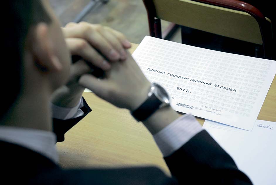 Ученик московской школы № 1254 перед досрочной сдачей ЕГЭ по русскому языку. 20 апреля