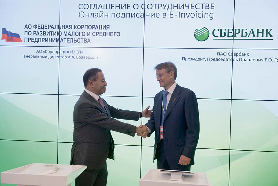 (слева) и президент, председатель правления Сбербанка России Герман Греф во время подписания соглашения