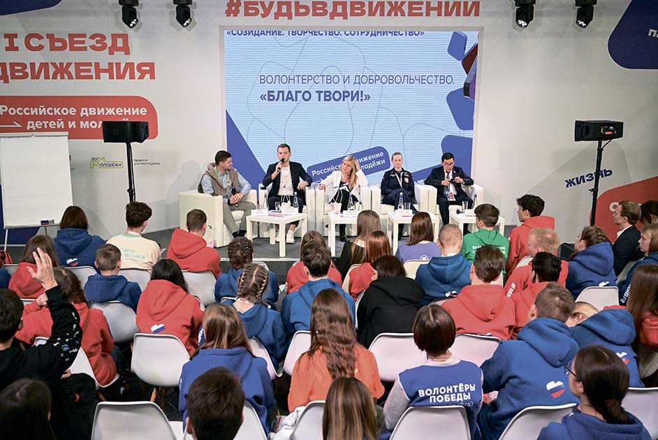 Участники первого съезда Российского движения детей и молодежи в Центральном выставочном